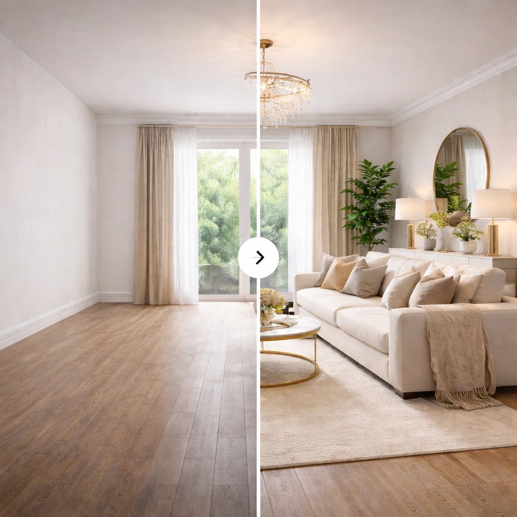 Enhance your space without altering structural elements. Perfect for staging, redesign inspiration, and layout experimentation.